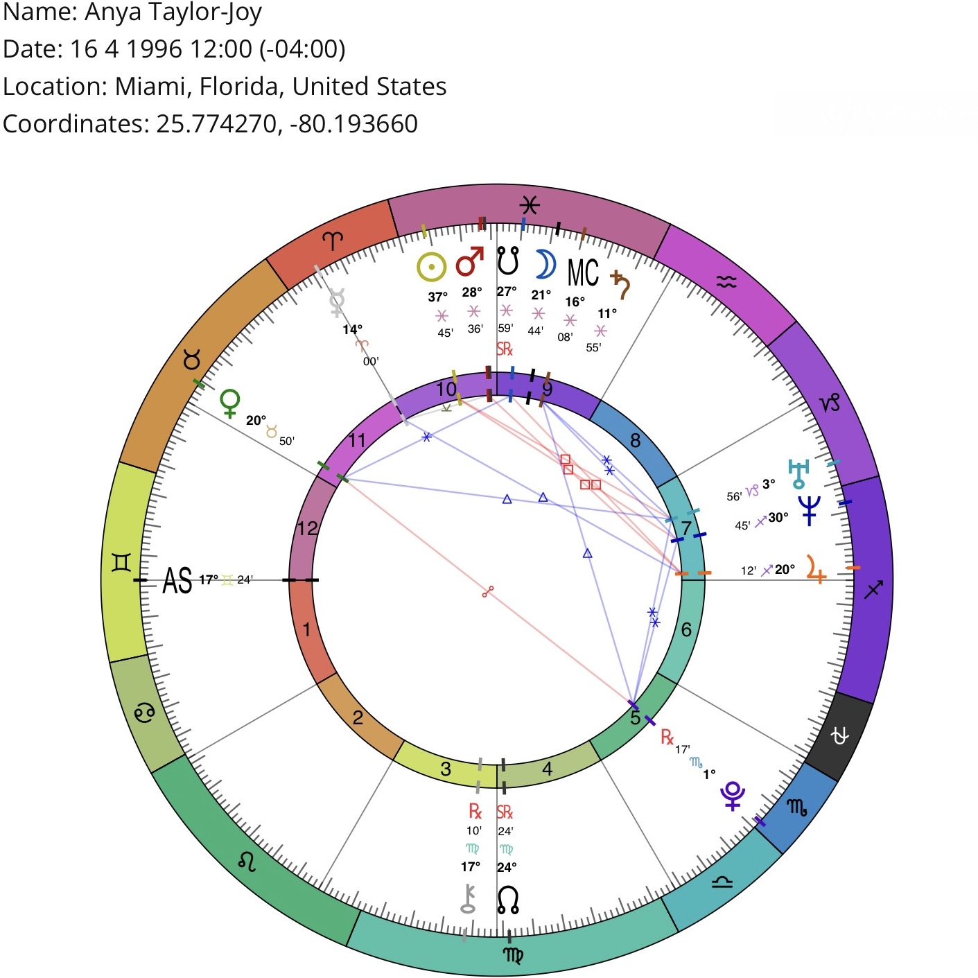 *Birth location/time may be inaccurate (but sufficient for astrological purposes). Courtesy of masteringthezodiac.com