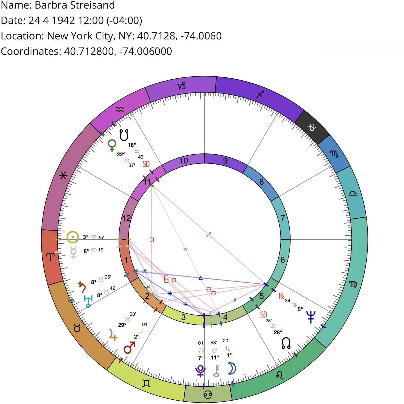 *Birth location/time may be inaccurate (but sufficient for astrological purposes). Courtesy of masteringthezodiac.com