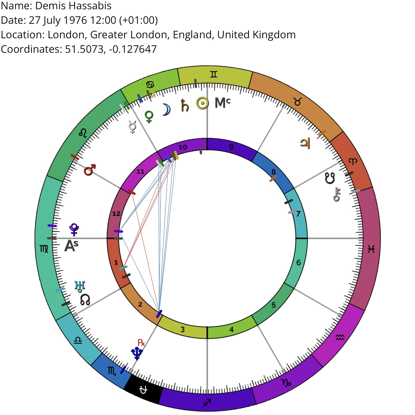 *Birth location/time may be inaccurate (but sufficient for astrological purposes). Courtesy of masteringthezodiac.com