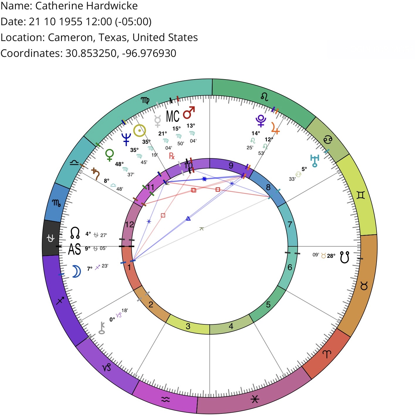 *Birth location/time may be inaccurate (but sufficient for astrological purposes). Courtesy of masteringthezodiac.com
