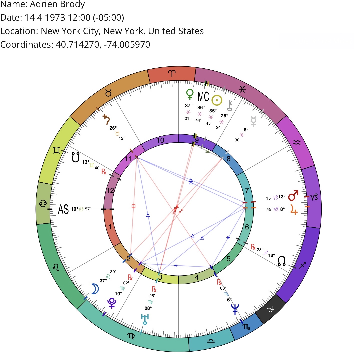 *Birth location/time may be inaccurate (but sufficient for astrological purposes). Courtesy of masteringthezodiac.com