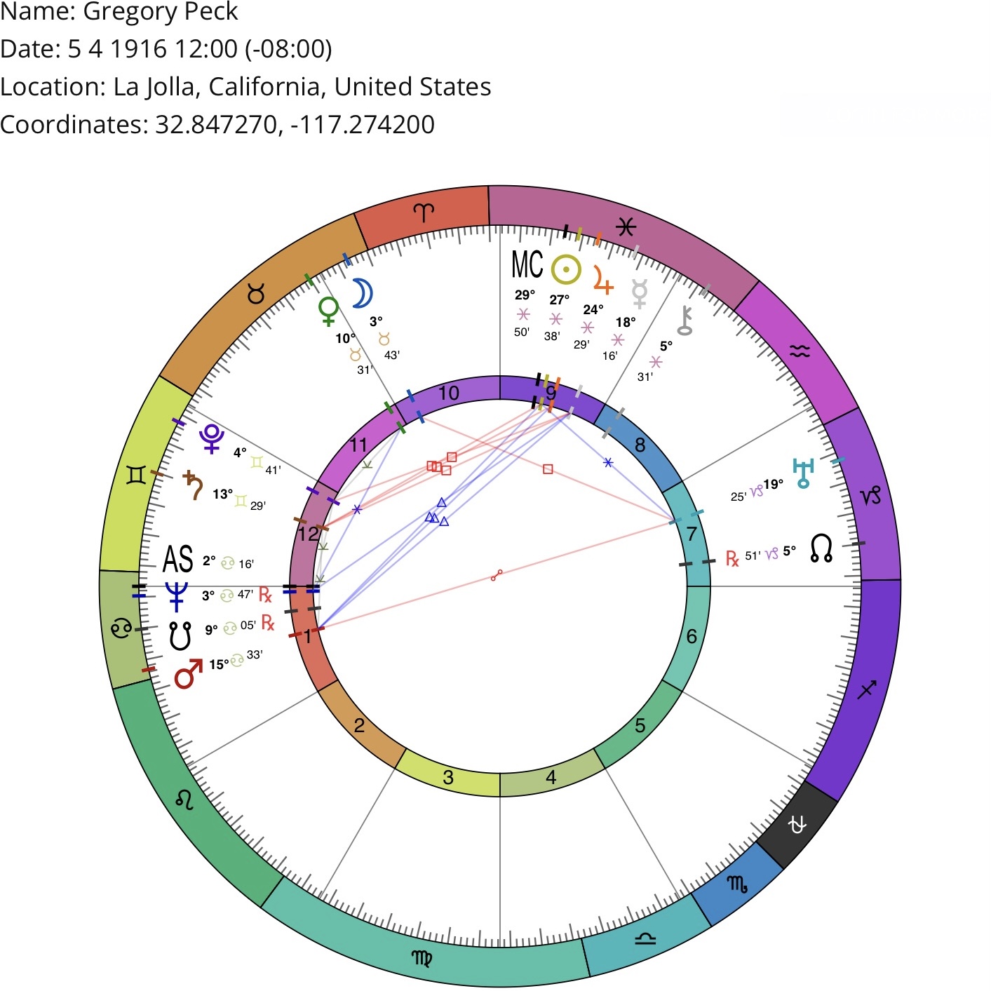 *Birth location/time may be inaccurate (but sufficient for astrological purposes). Courtesy of masteringthezodiac.com
