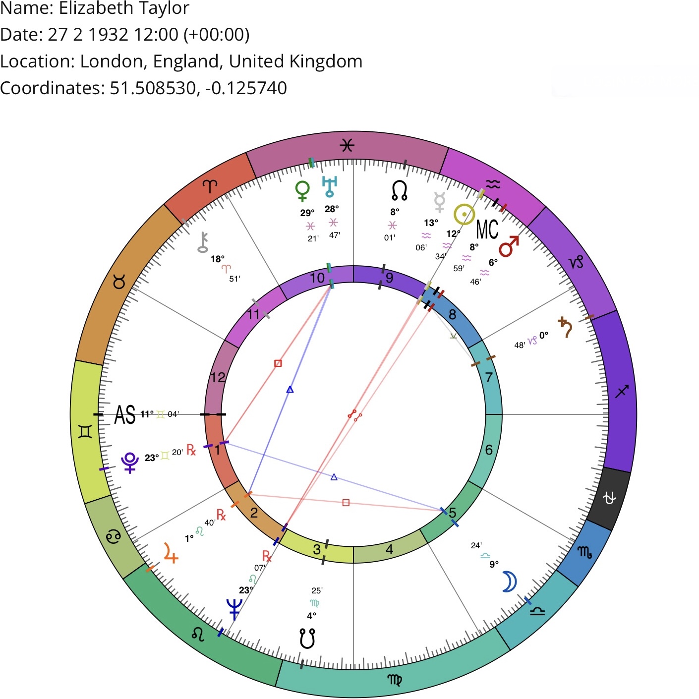 *Birth location/time may be inaccurate (but sufficient for astrological purposes). Courtesy of masteringthezodiac.com