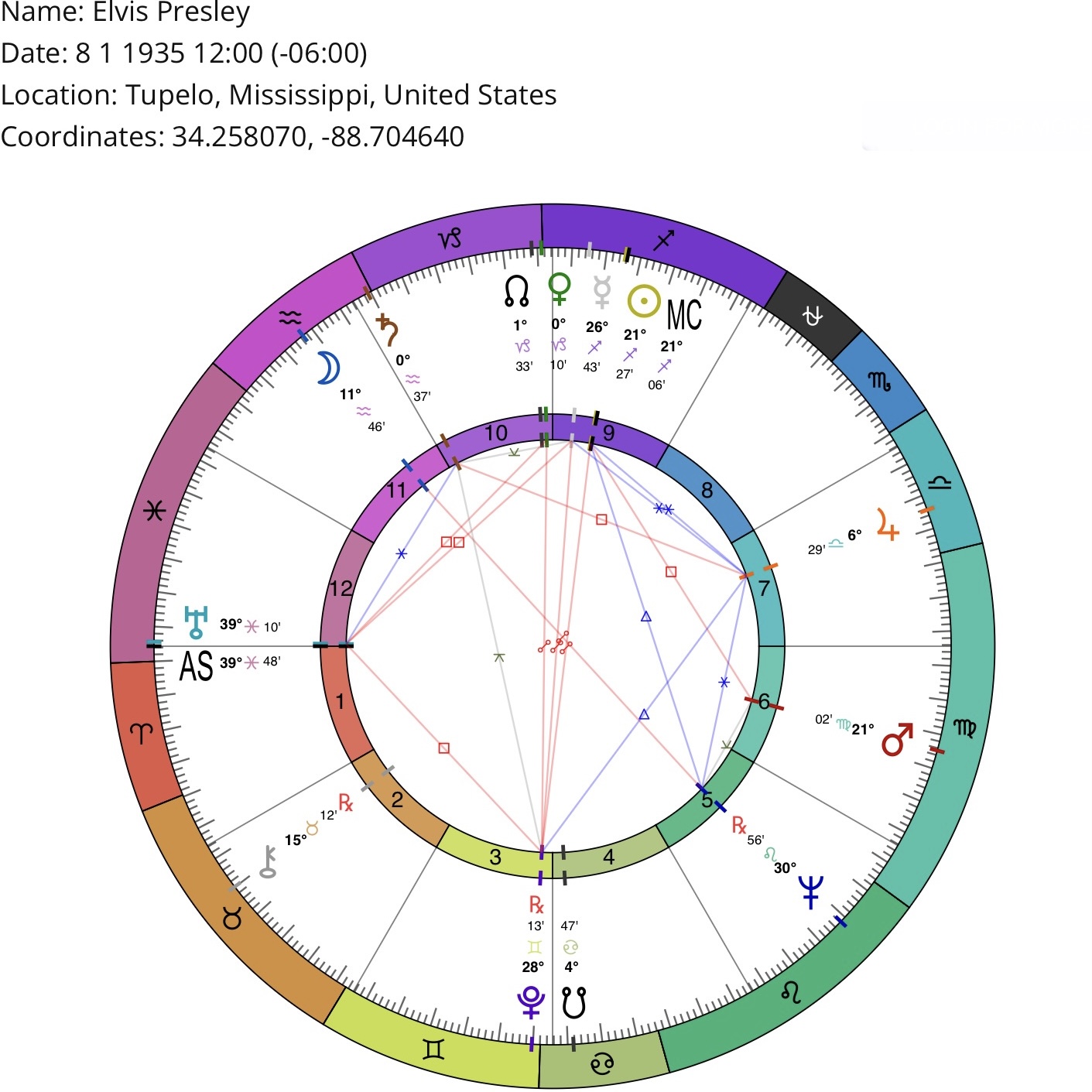 *Birth location/time may be inaccurate (but sufficient for astrological purposes). Courtesy of masteringthezodiac.com