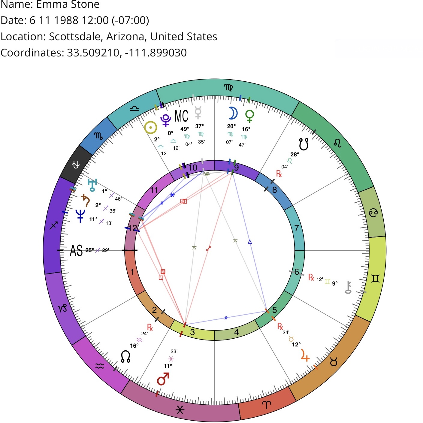 *Birth location/time may be inaccurate (but sufficient for astrological purposes). Courtesy of masteringthezodiac.com