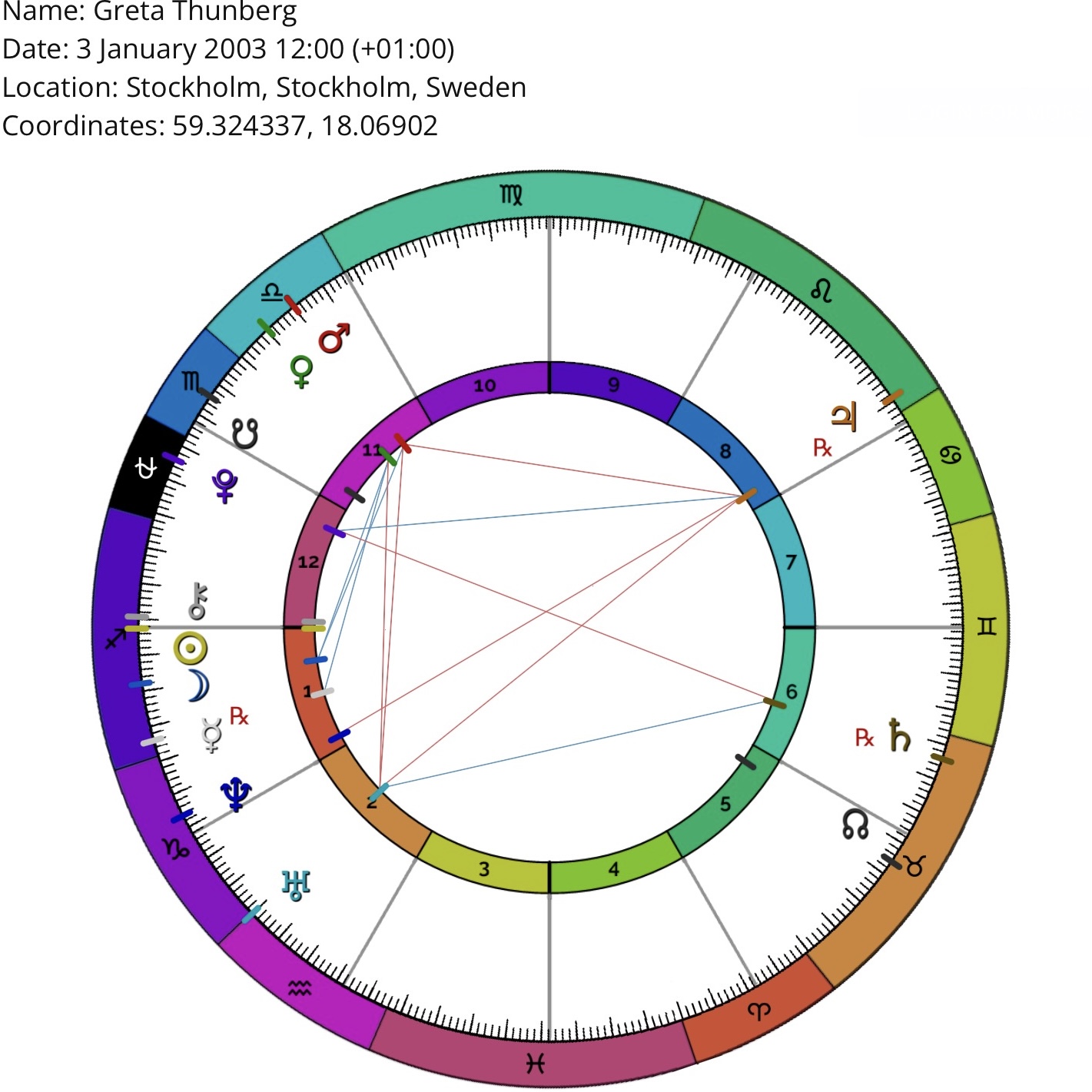 *Birth location/time may be inaccurate (but sufficient for astrological purposes). Courtesy of masteringthezodiac.com