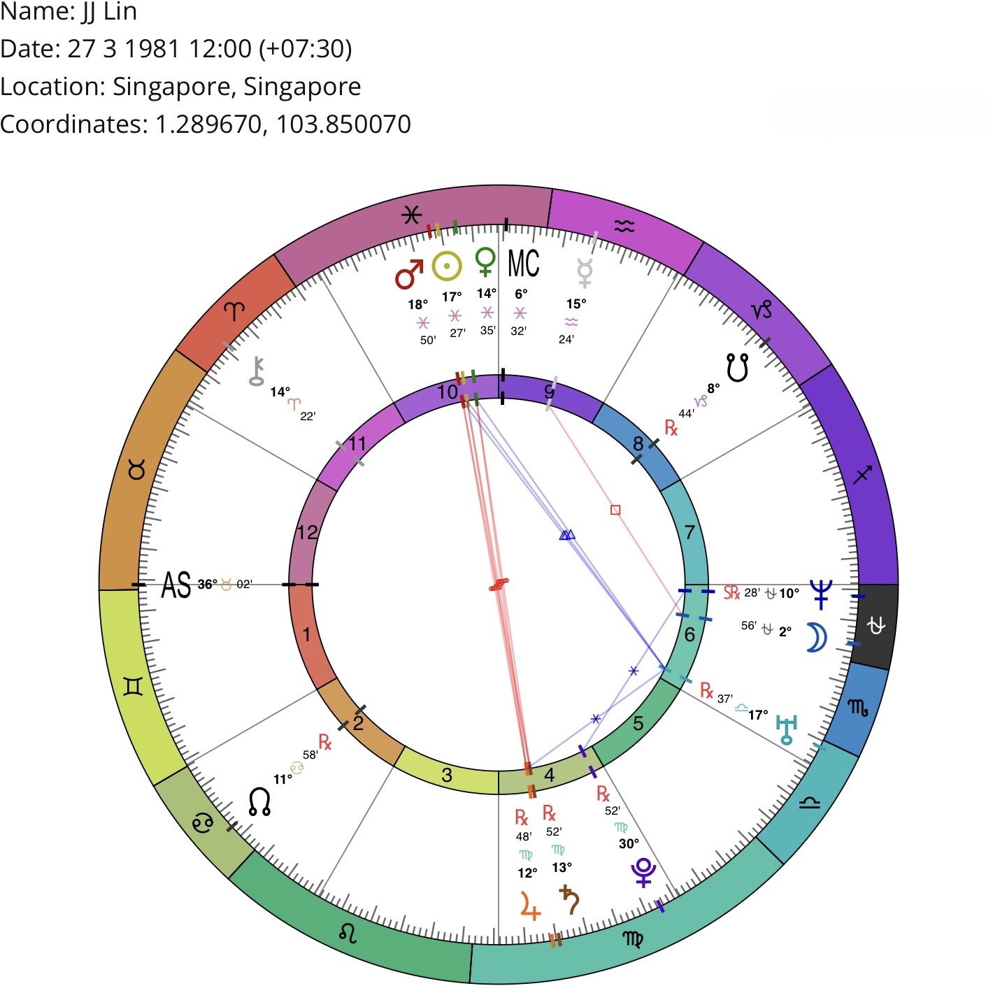*Birth location/time may be inaccurate (but sufficient for astrological purposes). Courtesy of masteringthezodiac.com