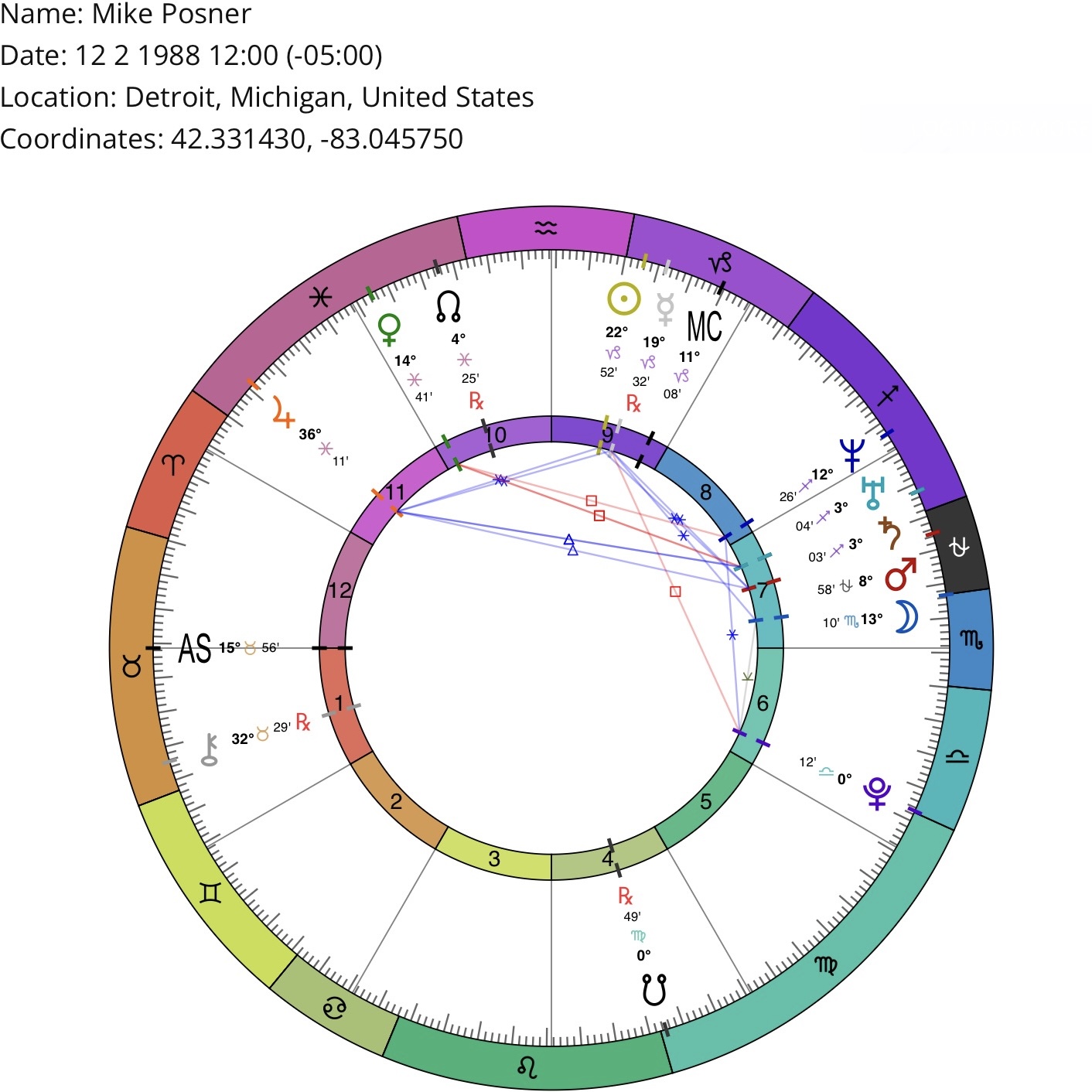 *Birth location/time may be inaccurate (but sufficient for astrological purposes). Courtesy of masteringthezodiac.com