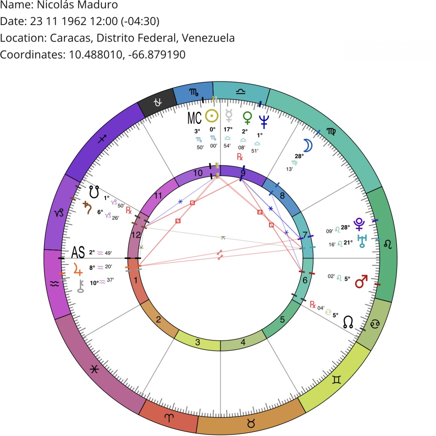 *Birth location/time may be inaccurate (but sufficient for astrological purposes). Courtesy of masteringthezodiac.com