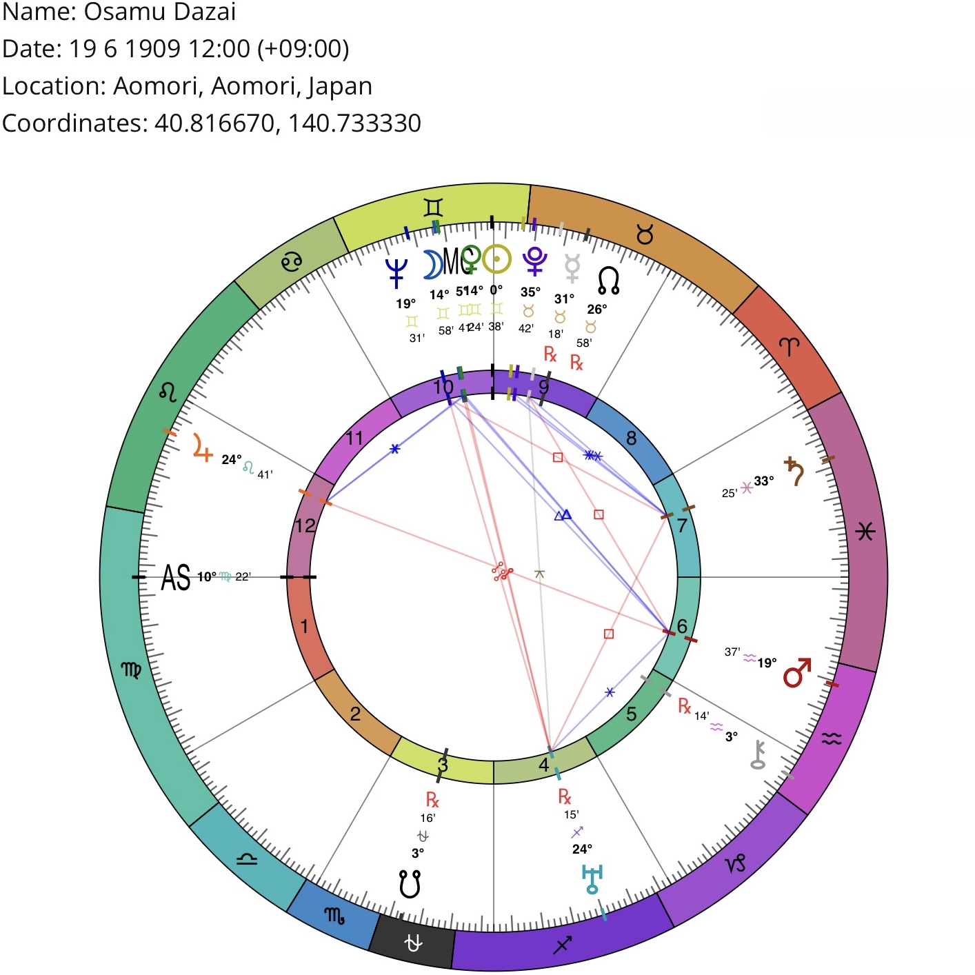*Birth location/time may be inaccurate (but sufficient for astrological purposes). Courtesy of masteringthezodiac.com