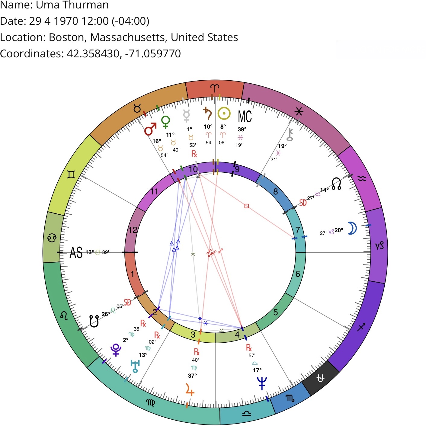 *Birth location/time may be inaccurate (but sufficient for astrological purposes). Courtesy of masteringthezodiac.com