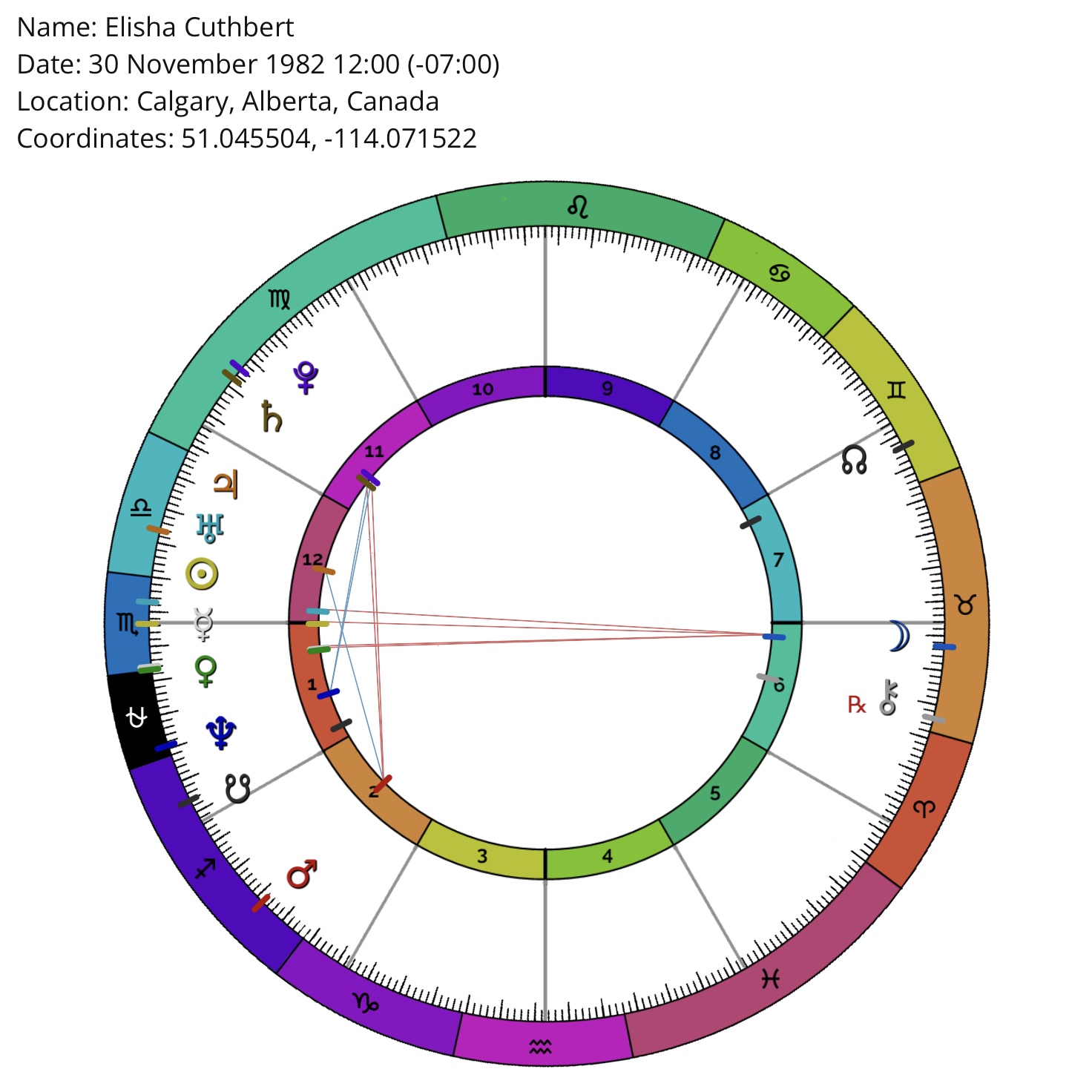 *Birth location/time may be inaccurate (but sufficient for astrological purposes). Courtesy of masteringthezodiac.com